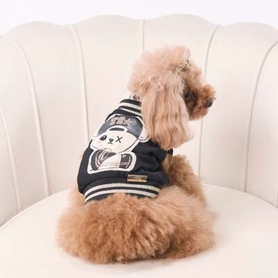 시크한 블랙 컬러에 귀여운 곰돌이 자수 디테일이 더해져